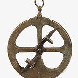 Box-shaped gold-plated brass universal equinoctial sundial with lid and hanging eye. The lid serves as a universal equinoctial sundial. The engravings and decorations with leaf and flower motifs are blacked. Dated 1572. Probably not used at sea.